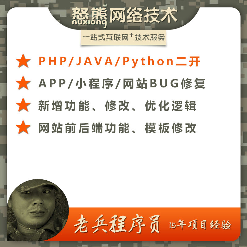 网站APP公众号小程序二次开发后端新增功能代码BUG前后端模板修改