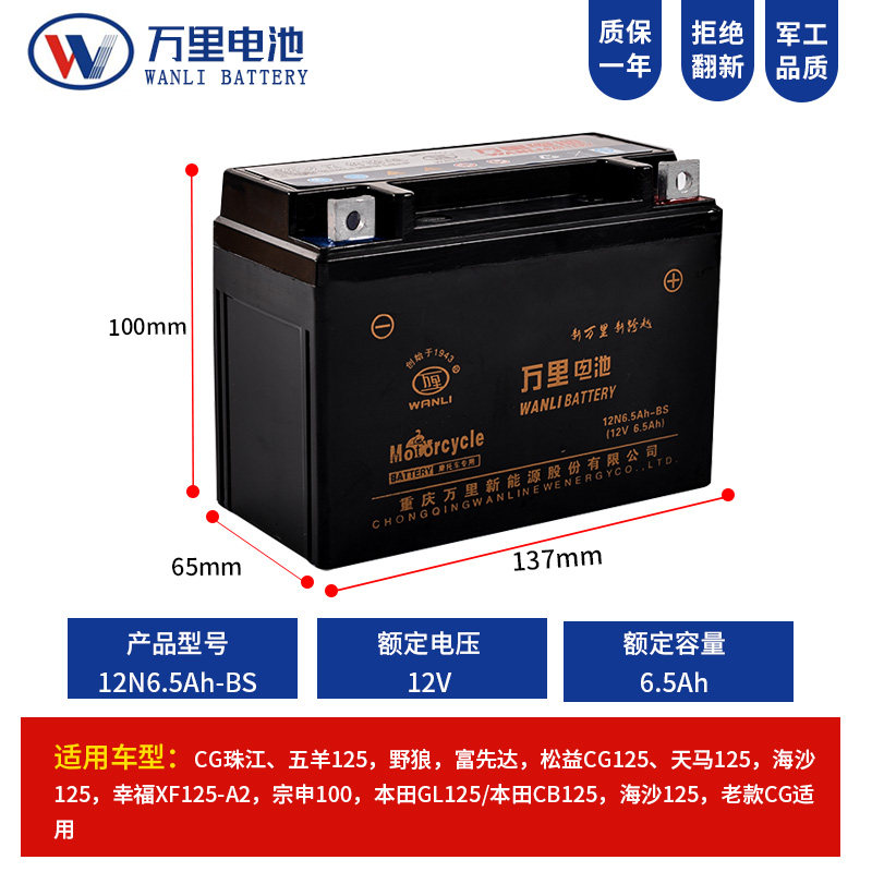 摩托车电瓶池12V伏6.5A安老款CG珠江五羊25野狼富先天马宗申本田热门设计联盟服务商