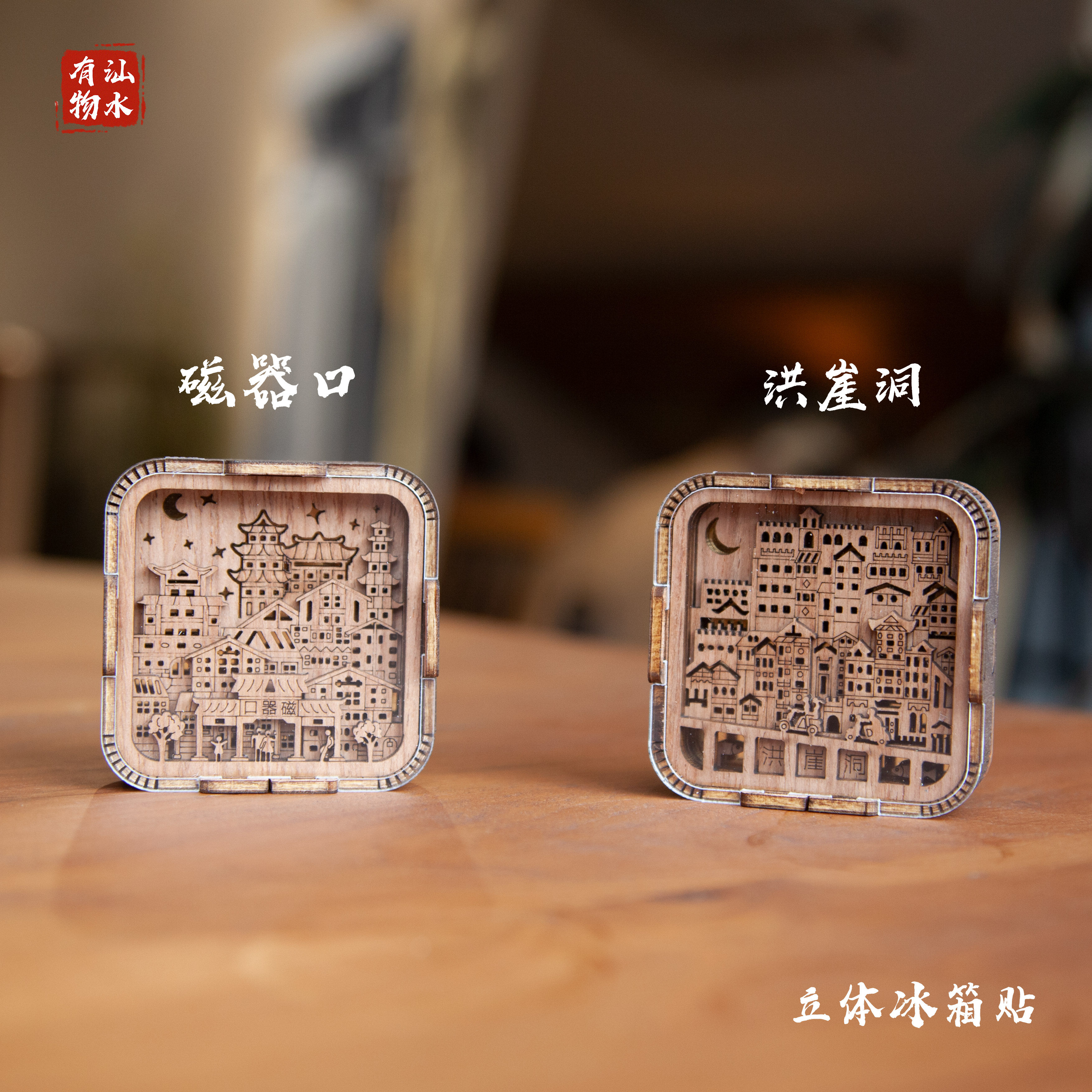 重庆特色城市旅游纪念品木雕立体迷你冰箱贴洪崖洞企业端午节礼品热门设计联盟服务商