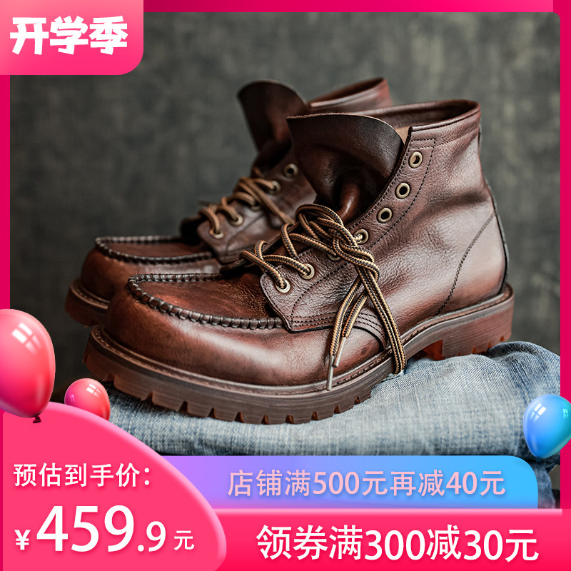 靴复古男士短筒英伦夏季休闲真牛皮美式短靴子系带875工装靴热门设计联盟服务商