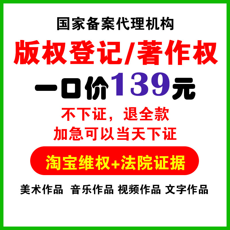 重庆版权申请作品登记证美术文字汇编软件视频摄像著作权代理淘宝热门设计联盟服务商