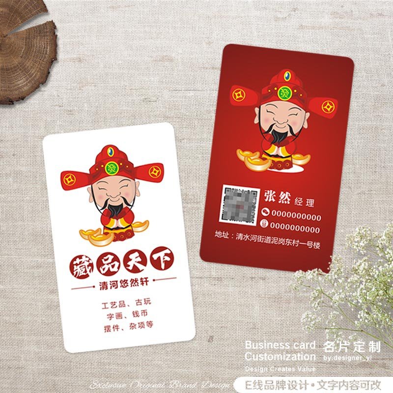 公司企业名片创意设计中式文化传媒店商务贸易室财神爷。热门设计联盟服务商