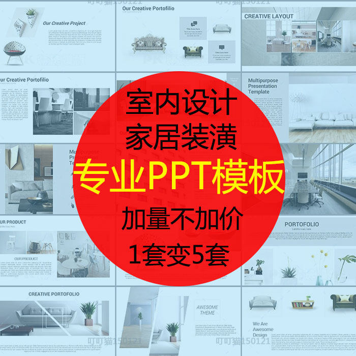 全新升级,包含五套专业设计的室内设计家居装修建筑相关PPT模板,详情见主图。