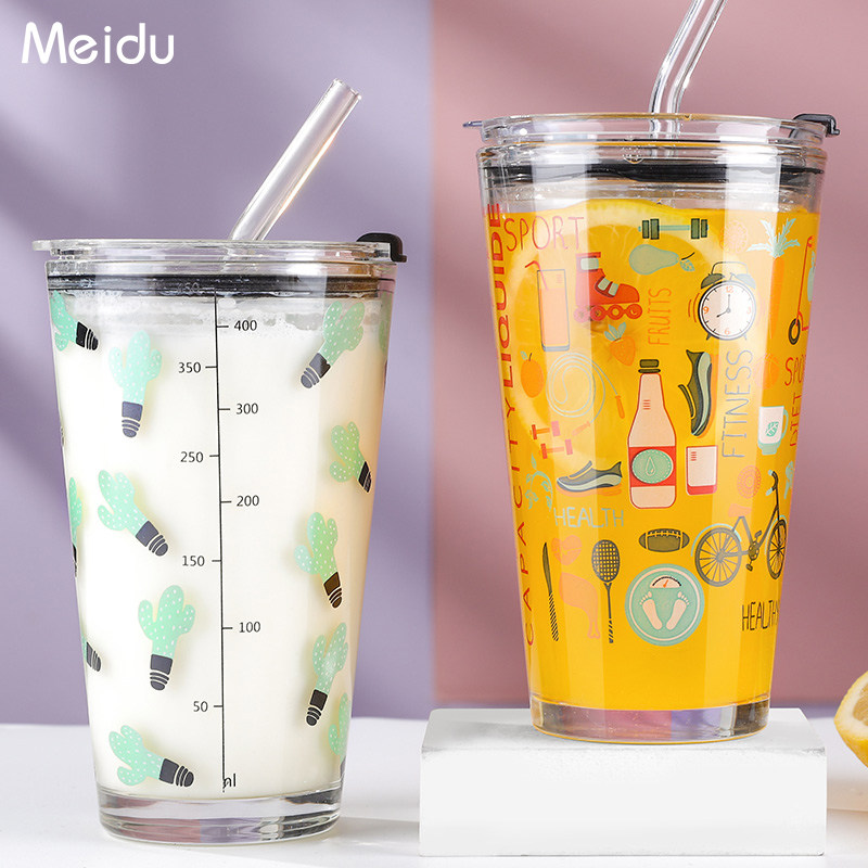牛奶杯刻度杯水杯吸管杯 玻璃杯ins风带盖办公室女家用喝奶儿童杯热门设计联盟服务商