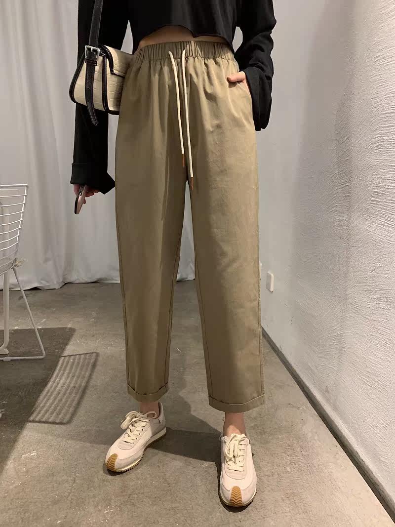 秋季新款宽松显瘦奶奶裤型百搭斜纹工装气质休闲裤九分裤女热门设计联盟服务商