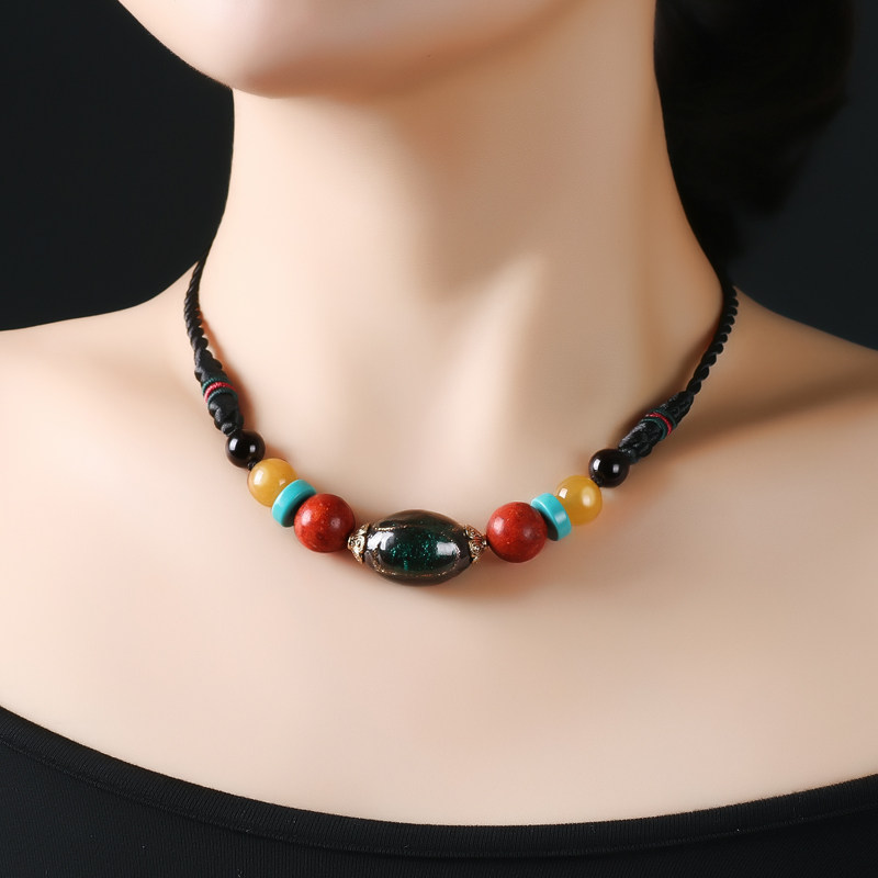民族风项链女锁骨链短款琉璃简约复古脖子装饰品百搭衣服配饰颈链热门设计联盟服务商